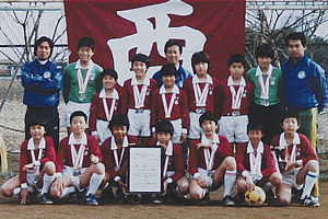低学年時は人数が少なく、徐々に増えて、高学年になるにしたがって成績が残せた世代です。おとなしい子が多かったですが、みんな楽しんでサッカーをしていました。